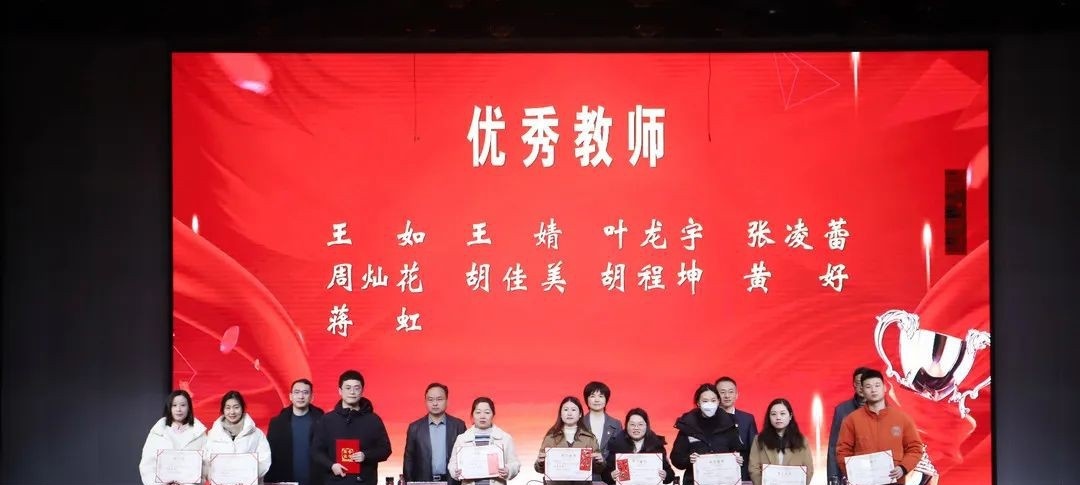 大会表彰了2021-2022学年先进个人共54名:其中“教坛新秀”10名,“优秀教师”10名,“骨干教师”4名,“教学”3名,“优秀教研室主任”2名,“优秀班主任”11名,“优秀教育工作者”14名。
