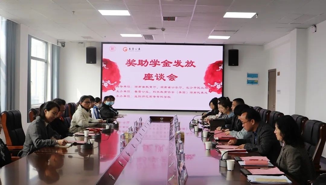 3月2日上午,校园里阳光和煦,暖风轻拂。我校奖助学金发放座谈会在综合楼会议室举行。湖南省企事业文联副主席、长沙市企事业文联主席、春雷公益党支部书记、关工委主任、金港控股有限公司董事长罗正荣,春雷公益副会长、关工委副主任田香兰,科技教育协会(美国)湖南代表处首席代表、春雷公益秘书长刘岳,科技教育协会(美国)湖南代表处项目主管冯秋文,学校党委书记林英,相关职能科室负责人及15名受助学生参加本次座谈会。会议由党委委员、副校长何子恢主持。