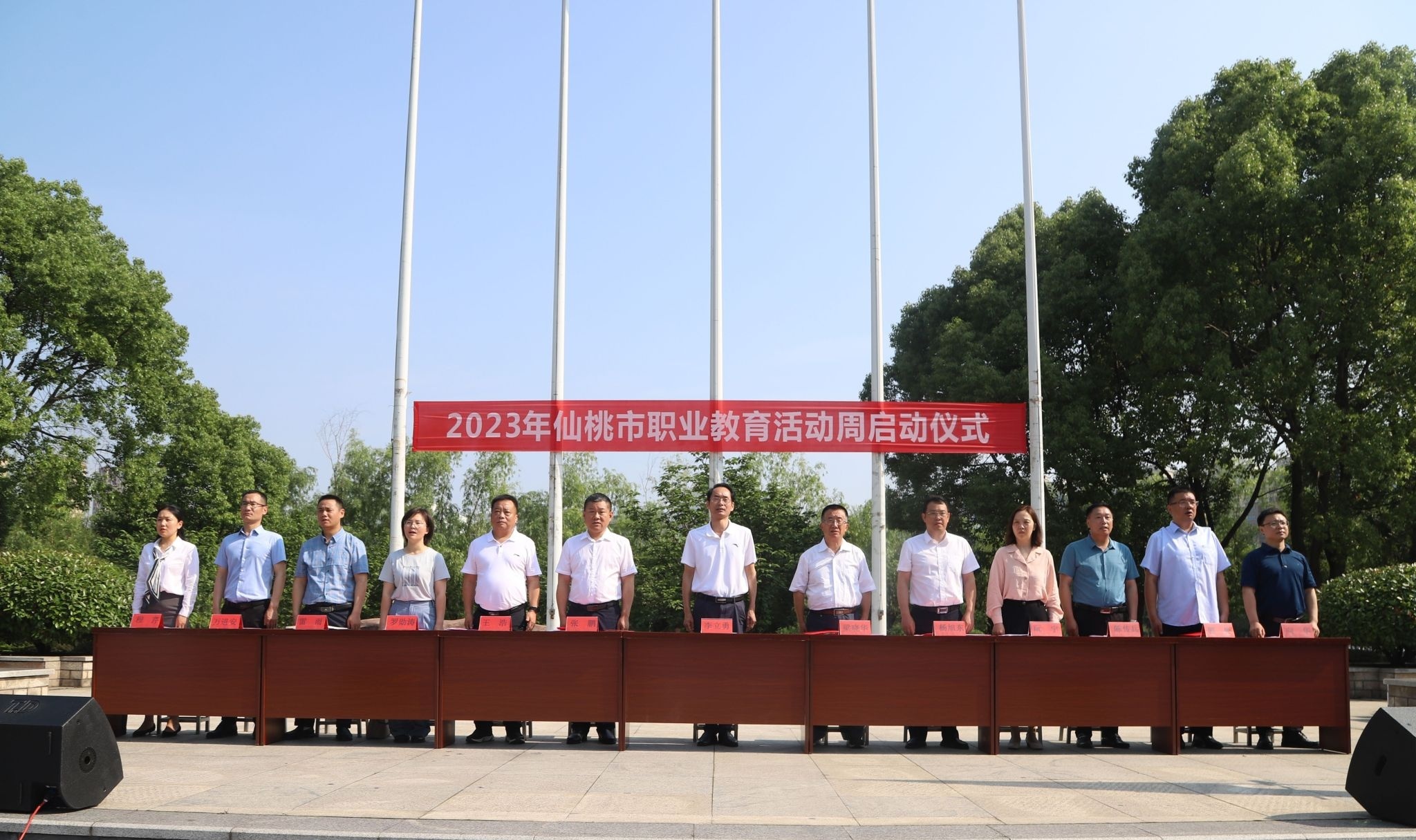 启动仪式上,仙桃职业学院党委副书记梁晓华、仙桃市人力资源和社会保障局副局长张鹏、仙桃市人民政府教育督导室副主任督学杨旭东分别讲话,仙桃市理工中等专业学校总支副书记郭彬宣读《2023年仙桃市职业教育活动周工作方案》,活动在李立勇院长的宣布中正式启动。