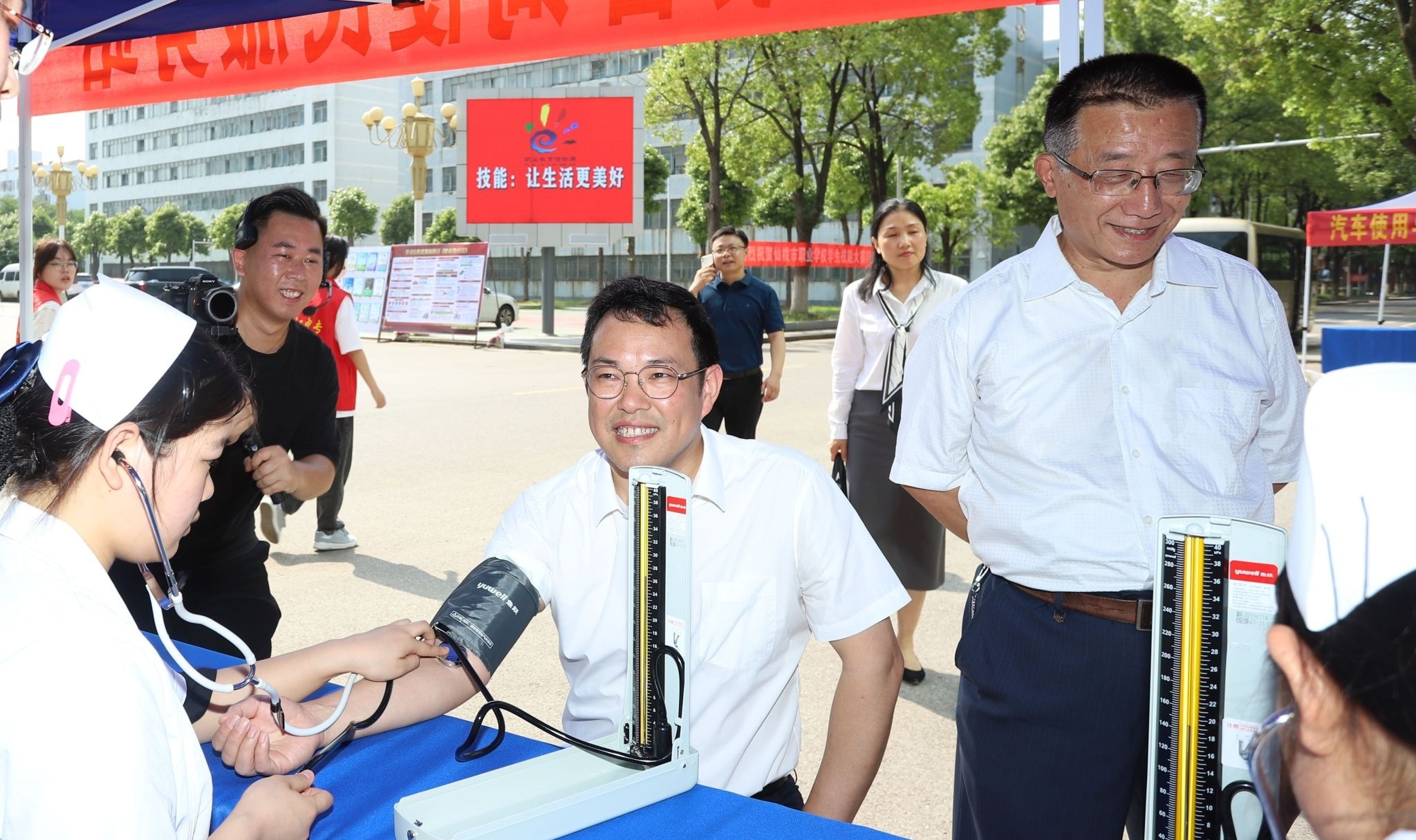 5月18日上午,2023年仙桃市职业教育活动周启动仪式在仙桃市高级技工学校(理工中专)举行,仙桃职业学院院长李立勇、仙桃职业学院党委副书记梁晓华、仙桃职业学院工会主席王浩、市人力资源和社会保障局副局长张鹏、市人民政府教育督导室副主任督学杨旭东等领导出席了活动。今年活动周的主题为“技能:让生活更美好”。