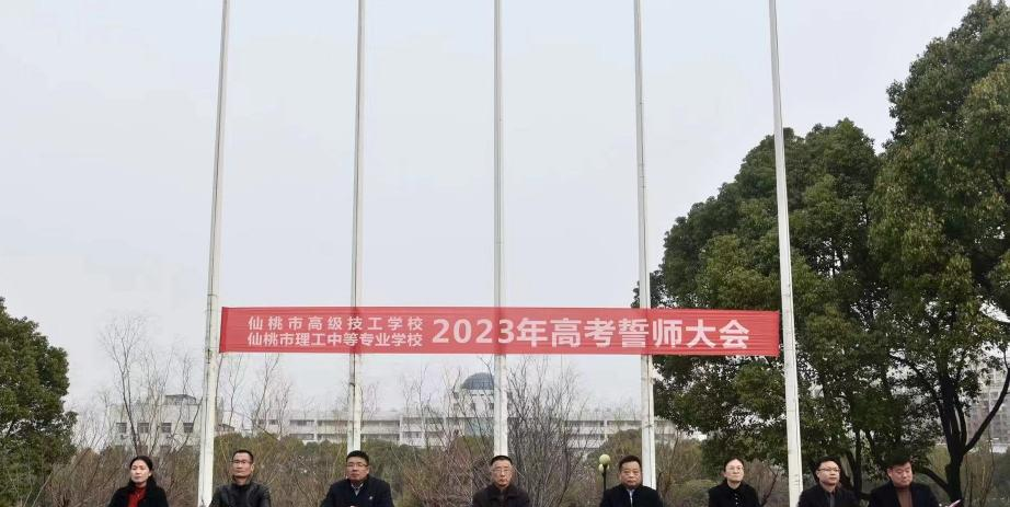 3月2日上午9点,仙桃市高级技工学校、仙桃市理工中等专业学校在国旗广场隆重举行2023年高考冲刺百日誓师大会。仙桃职业学院党委副书记梁晓华,学院工会主席、两校负责人王浩,三年级学生及全校教师参加了大会。