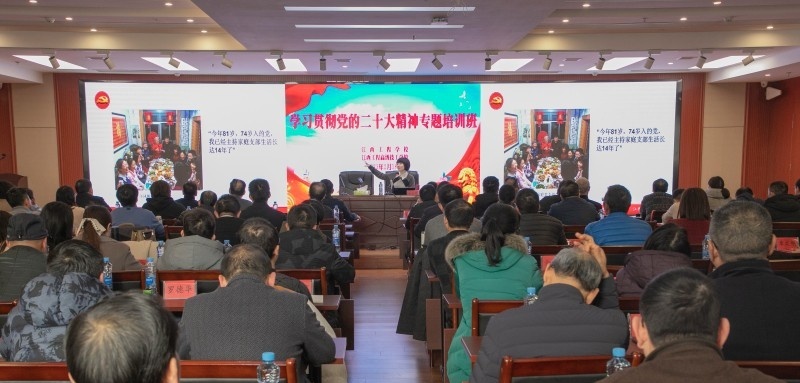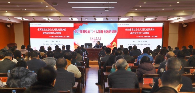 为全面贯彻落实党的二十大精神,2月18,我校在青云谱校区举办学习贯彻党的二十大精神培训班。此次培训,邀请了省委党校专家教授为我校全面贯彻党的二十大精神开局之年上好“课”。副校长韩书文主持开班式,校党委书记孙江云作总结讲话,全体校领导班子成员、副处级以上干部、中层干部和党员参加培训。