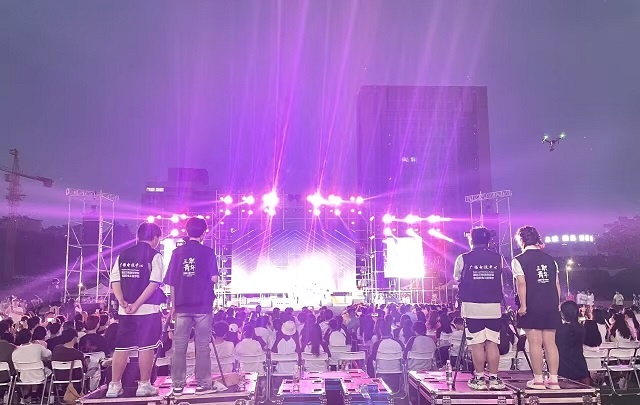 5月20日,湖北三峡技师学院(宜昌市机电工程)融媒体中心直播团队30多名技能型志愿者携带100多个影视级设备, 受邀参与湖北三峡职业技术学院“民族风•国潮范•校友情”文艺晚会。同学们深入学习、服务社会、奉献自我,全程参与了无人机拍摄、现场摄像、现场live直播等的志愿服务,吸引了三万多人观看,受到湖北三峡职业技术学院的一致好评。