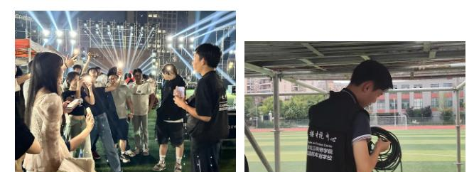 学院融媒体中心社团以“三全育人”为核心思想,以“三行文化”为目标,致力于培养出德技并修的高端团委融媒体技术人才,通过院校协作互助,提升融媒体技术和品牌。“ 我们这次活动是支援,也是学习,更是一次特殊的志愿服务。三天活动的阴雨天也阻挡不了我们的参与热情和敬业精神。” 融媒体中心总台台长向予韬说。