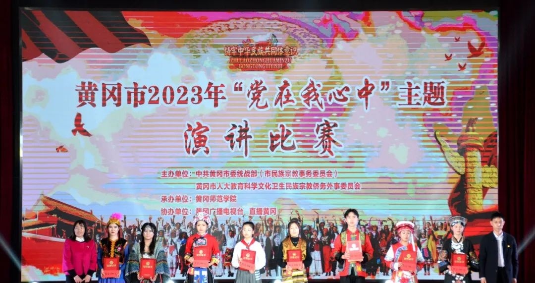 近日,由黄冈市委统战部、黄冈市人大主办的黄冈市2023年“党在我心中”主题演讲比赛在黄冈师范学院厚德楼学术报告厅举行。黄冈中等职业学校高度重视此次活动,经过选拔最终派出三名选手参赛,并选送了《打墙舞》《雄鹰展翅》两个文艺节目进行演出。
